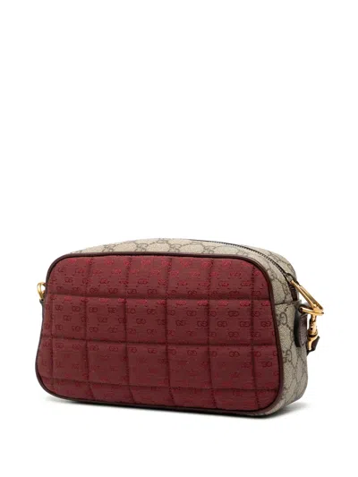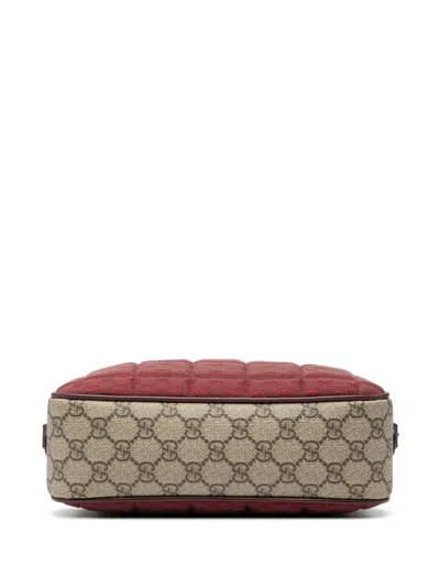 Pre-owned 2016-2025 Small Quilted Mini Gg Canvas And Gg Supreme Double G Crossbody Bag In Red