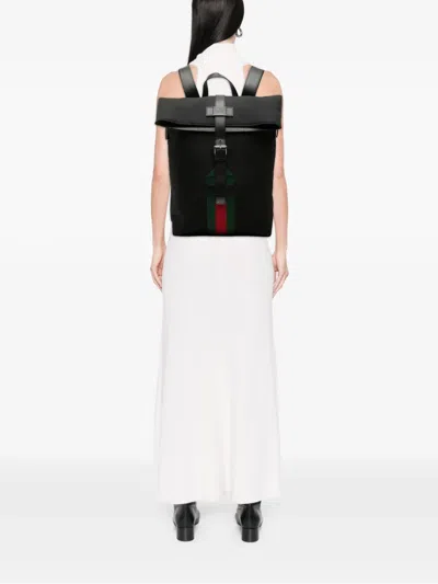 Pre-owned 2016-2025 Canvas Techno Web Fold Over Backpack In Black
