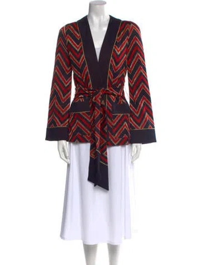 Gucci Wool Cardigan From the Spring/Summer 2018 Collection by Alessandro Michele Blue & Red Sylvie Web Accent & Chevron Glitter Accents Long Sleeve with V-Neck Sash-Tie Closure at Front Designer Fit: Sweaters by Gucci typically fit true to size. | Gucci 2018 Wool Sweater in Blue/Red, Women's S