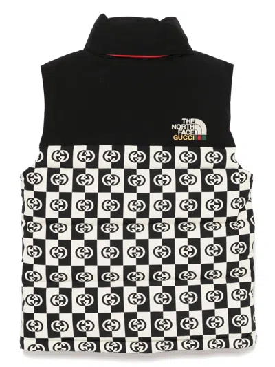 circa 2020s black/white down-feather filling padded design stand-up collar front zip fastening embroidered logo at the chest sleeveless checkerboard print signature Interlocking G logo two side zip-fastening pockets embroidered logo to the rear drawstring hem toggle fastening