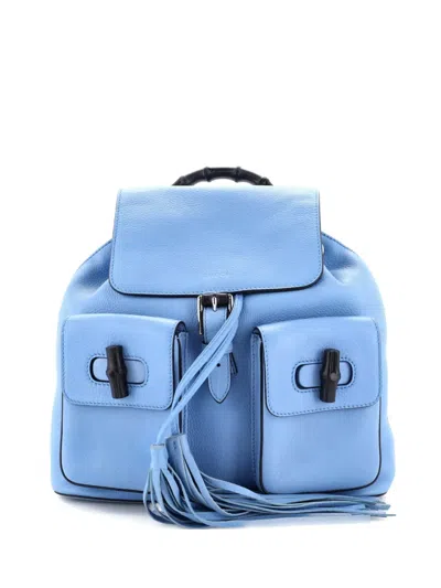 Pre-owned Bamboo Tassel Leather Medium Backpack In Blue