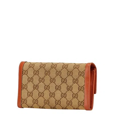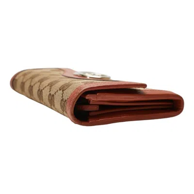 Pre-owned Beige Brown Gg Canvas Leather Long Wallet (bi-fold) ()