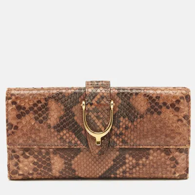 Pre-owned Beige Python Spur Flap Continental Wallet In Sand