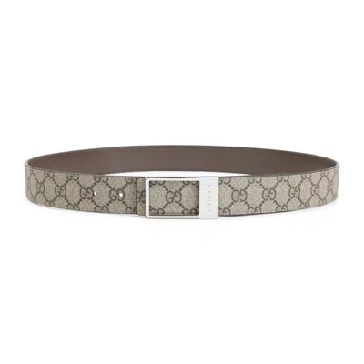 GUCCI Beige Rectangular Buckle Reversible Belt In Neutral