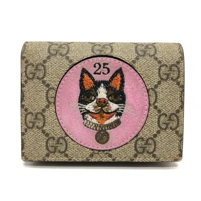 Pre-owned Beige Red Color Gg Supreme Canvas Wallet (bi-fold) () In Multi