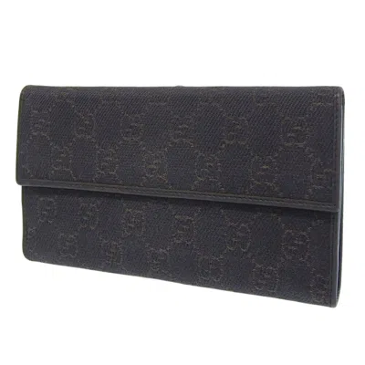 Pre-owned Black Gg Canvas Long Wallet (bi-fold) ()