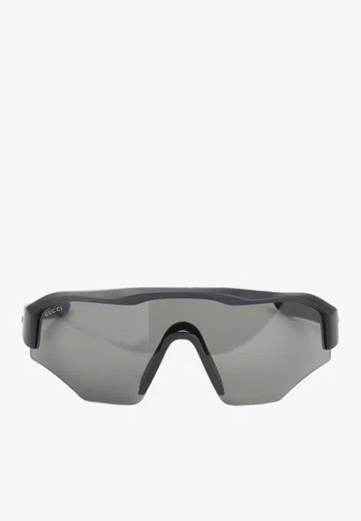 Frame material: acetate. Lens material: acetate. Frame color: black. Lens color: gray. Frame shape: mask. Non-adjustable nose pads. Logo print/detail: arm-embossed logo. Style: GG2017s