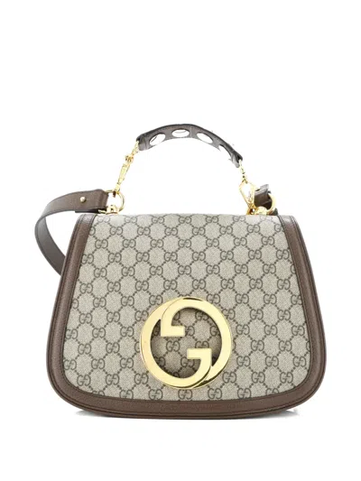 Pre-owned Blondie Nm Top Handle Bag Gg Coated Canvas Medium Satchel In Brown
