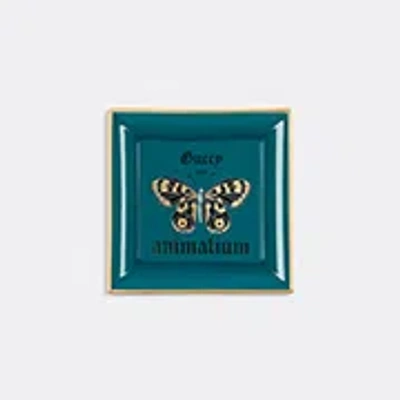 Gucci and porcelain specialists Richard Ginori unite for the 'Animalium' square change tray, a decorative dish that is ideal for holding small trinkets and may also be used as an ashtray. Defined by the application of a butterfly and the 'Guccy XXV' print at its centre, the tray can be displayed alongside matching pieces from the same collection for a coordinated set.