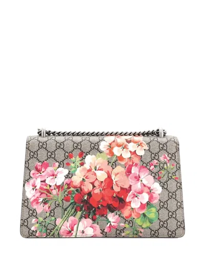 Pre-owned Dionysus Bag Blooms Print Gg Coated Canvas Small Shoulder Bag In Red