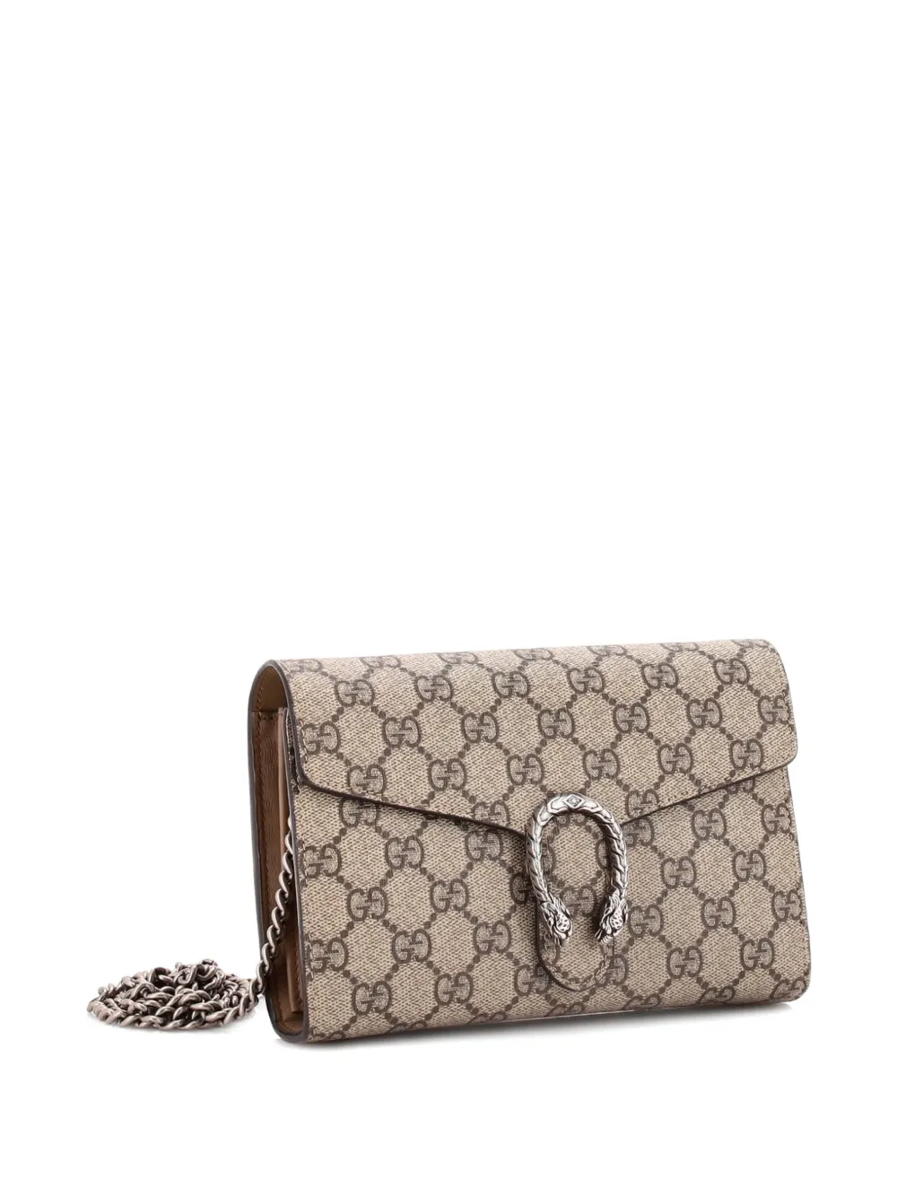 Pre-owned Dionysus Chain Wallet Gg Coated Canvas Small Crossbody Bag In Brown