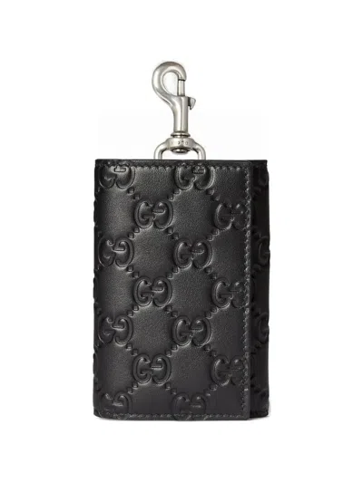 black calf skin embossed motif silver-tone hardware tri-fold design internal key rings This piece comes complete with a protective dust bag