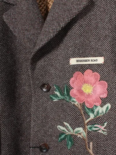 Pre-owned Floral-embroidered Coat In Brown