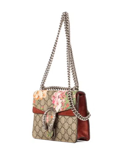 Pre-owned Floral Gg Canvas Shoulder Bag In Neutral