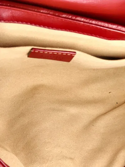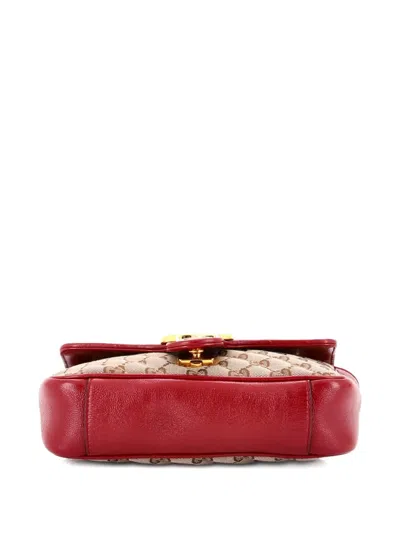 Pre-owned Gg Marmont Flap Bag Diagonal Quilted Gg Canvas With Leather Mini Crossbody Bag In Brown