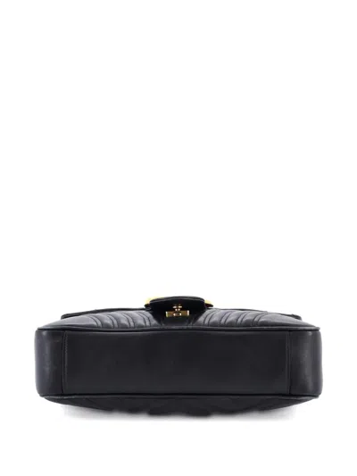 Pre-owned Gg Marmont Flap Bag Matelasse Leather Medium Shoulder Bag In Black