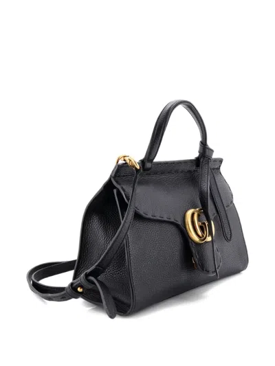 Pre-owned Gg Marmont Top Handle Bag Leather Mini Satchel In Black