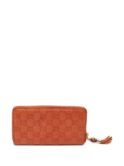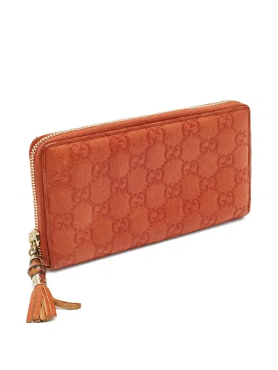 Pre-owned Gg-pattern Zip-around Wallet In Orange