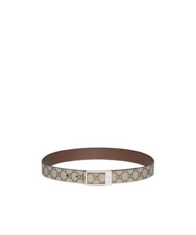 Beige and dark brown GG Supreme on one side and brown leather on the other Palladium-toned hardware Rectangular buckle with Gucci engraving Detachable buckle 3.5cm width