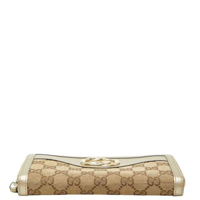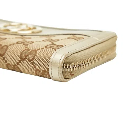 Pre-owned Gold Beige Canvas Leather Long Wallet (bi-fold) ()
