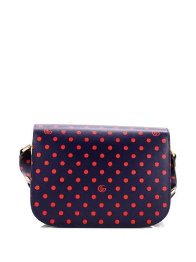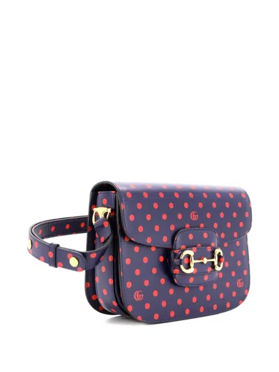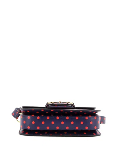 Pre-owned Horsebit 1955 Printed Leather Small Shoulder Bag In Blue