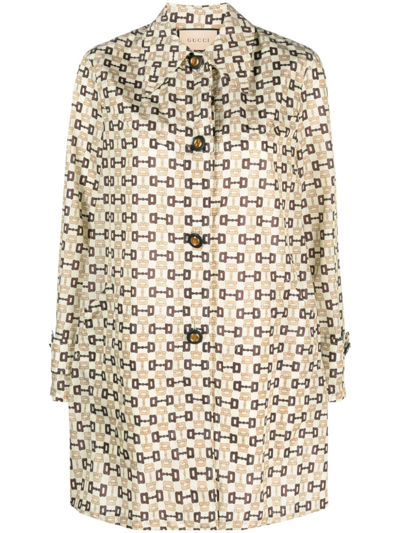 GUCCI Horsebit-print Shell Coat In Beige
