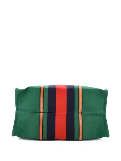 Pre-owned Interlocking G Web Canvas Large Tote Bag In Green