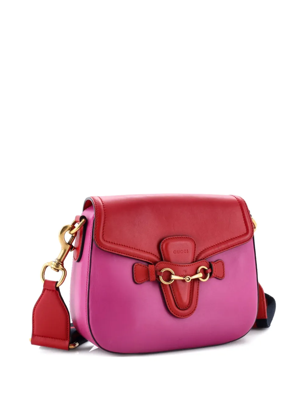 Pre-owned Lady Web Leather Medium Shoulder Bag In Pink