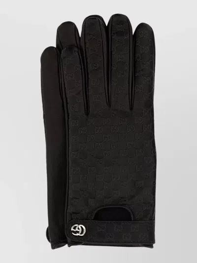 GUCCI Leather Gloves Monogram Pattern Snap Button In Black