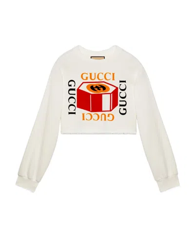 GUCCI Logo-print Cropped Sweatshirt In Off White