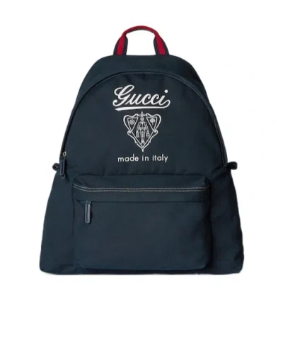 GUCCI Medium Printed Canvas Backpack In Dark Blue