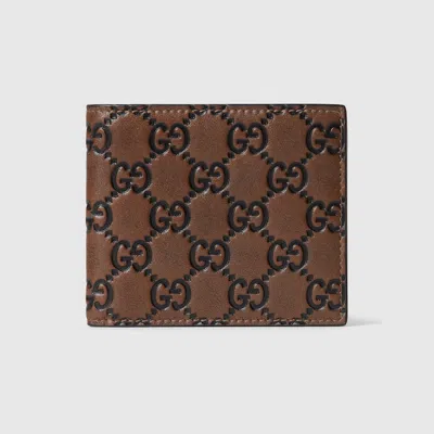 GUCCI Men Gg Emblem Leather Wallet With Embossed Gg Logo In Brown