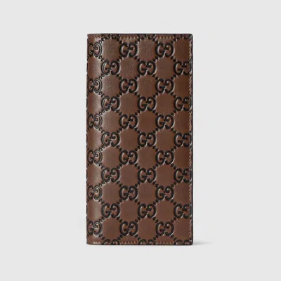 GUCCI Men Gg Emblem Leather Wallet With Embossed Gg Motif In Brown