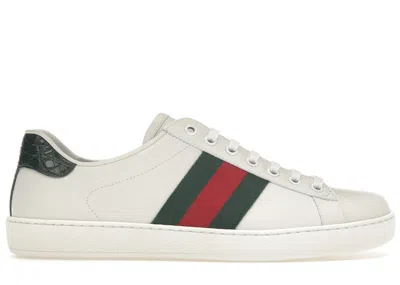 The Men's Gucci Ace Classic Sneakers in White is a timeless and iconic sneaker offered by the luxury Italian fashion brand, Gucci. They are typically known for their timeless design featuring minimalist elements. The Men's Gucci Ace Classic Sneakers in White is constructed with a premium leather upper with an attention to detail and craftsmanship, typical of the Gucci brand. The leather upper showcases a predominantly white color scheme, which also extends to the sole unit. The white upper is complemented by the iconic green and red stripes synonymous with the Gucci brand. There is also a small green patch on the heel which is made from snakeskin material, adding visual interest and a bit of texture to the otherwise minimalist design of the shoe. One thing our experts love about the Men's Gucci Ace Classic Sneakers in White is the fact that they are unisex and can therefore be worn by either gender, making them a popular choice. The shoes were first released for retail priced at $590 on August 1, 2019.