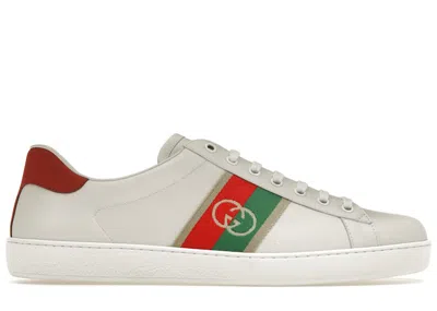 Pre-owned Men's Ace Interlocking Gg Sneakers In White/red/green