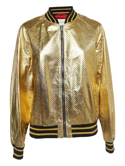 gold-tone front zip fastening perforated design striped border long raglan sleeves Condition: EXCELLENT. This previously owned item is in near-perfect condition with no signs of damage or use.