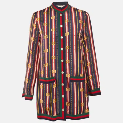 Pre-owned Multicolor Printed Silk Button Front Tunic S