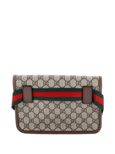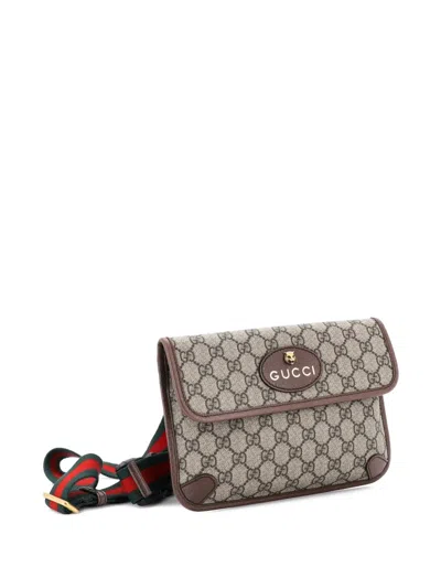 Pre-owned Neo Vintage Flap Gg Coated Canvas Belt Bag In Brown