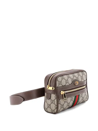Pre-owned Ophidia Gg Coated Canvas Small Belt Bag In Brown