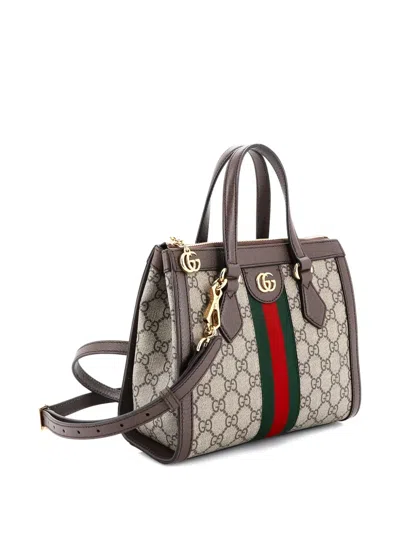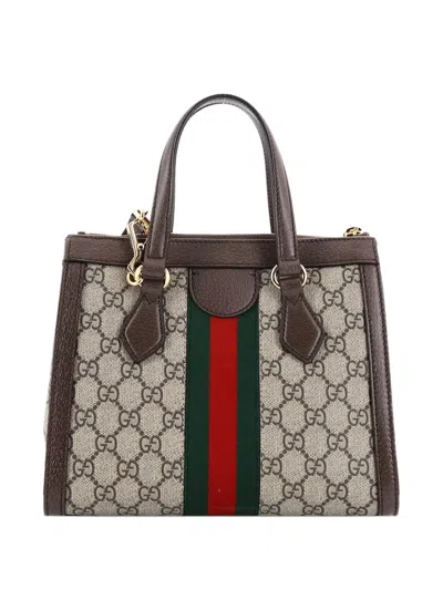 Pre-owned Ophidia Top Handle Gg Coated Canvas With Leather Small Tote Bag In Brown