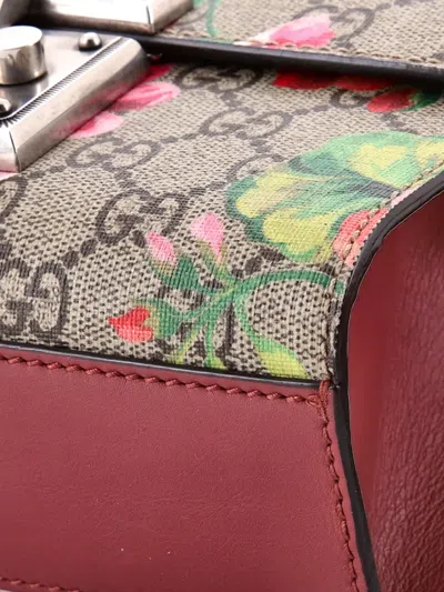 Pre-owned Padlock Blooms Print Gg Coated Canvas Small Shoulder Bag In Brown