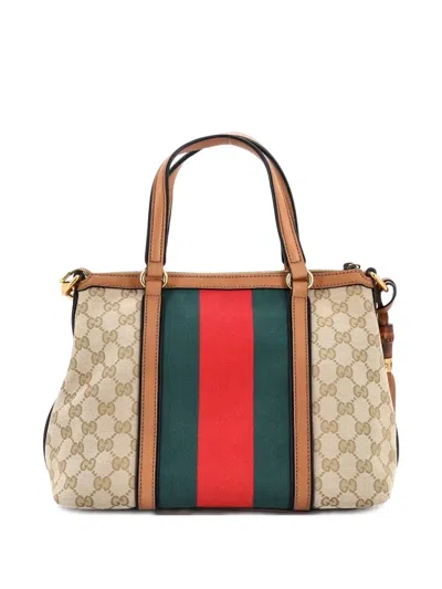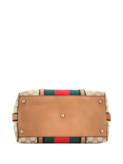 Pre-owned Rania Convertible Top Handle Bag Web Gg Canvas Small Satchel In Neutral
