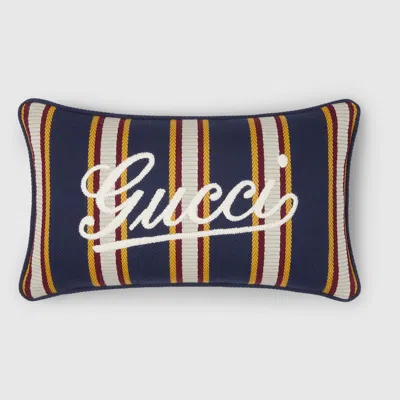 GUCCI Rectangular Cotton Jacquard Cushion In Blue