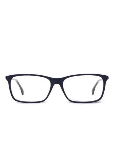 dark blue rectangular frame clear lenses These glasses come with a protective case. All glasses from FARFETCH are sold as non-prescription frames.