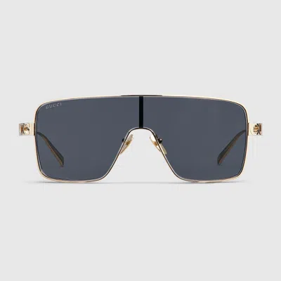 The Pre-Fall 2025 eyewear collection blends statement silhouettes from the archives with a contemporary touch These rectangular frame sunglasses are stated in light gold-toned metal with a cut-out Gucci logo detail Shiny light gold-toned metal frames Shiny light gold-toned metal temples with cut-out Gucci logo Solid grey lens 100 UVA UVB protection GG1936S Temple length 4 7 Lens height 2 Nose bridge length 0 3 Frame height 2 Frame width 5 Hinge to hinge 5 4 The glasses will arrive in a velvet case available in a range of six jewel-toned colors and paired with a coordinating satin lining The case color will be individually selected for each pair of glasses and comes with a matching satin flannel pouch and ivory microfiber cloth