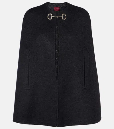 GUCCI Reversible Wool Cape With Horsebit Detail In Gray