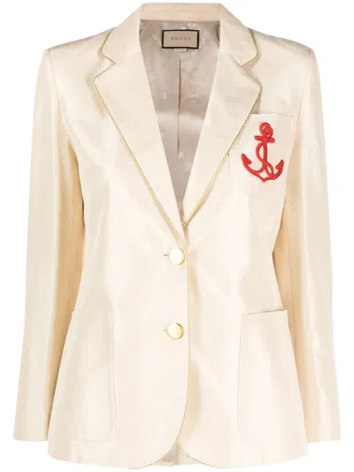 GUCCI Single-breasted Patch-detail Silk Blazer In Neutrals