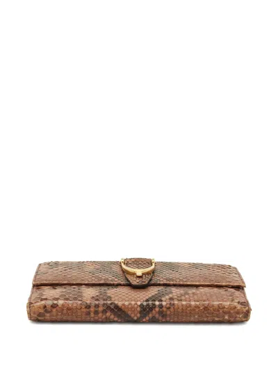 beige python leather gold-tone spur detail flap front multiple internal sections card slots Condition: GOOD. This previously owned and used item is in good condition with minimal signs of use. This may include fading of material or plating and scratches.