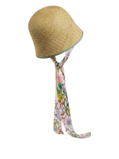 straw ribbon detail floral print silk detail Condition: EXCELLENT. This previously owned item is in near-perfect condition with no signs of damage or use.
