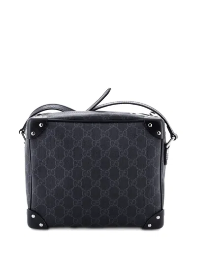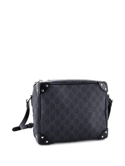 Pre-owned Trunk Shoulder Bag Gg Coated Canvas With Studded Leather Crossbody Bag In Black
